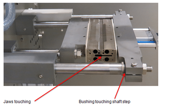 5. Access the JOG MENU on the HMI of the machine and close the horizontal jaws in the jogging mode.